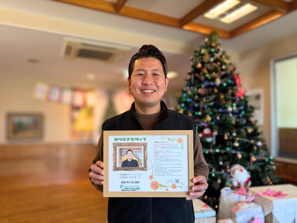 カリスマスタッフの認定証をお渡しに、特別養護老人ホーム ガリラヤ荘さんへお邪魔してきました。