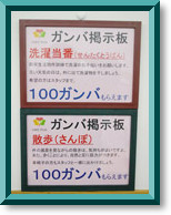 ガンバの使い方、ガンバのもらい方は、施設内のあちこちに設置された 「ガンバ掲示板」 に書いてあります。