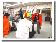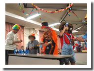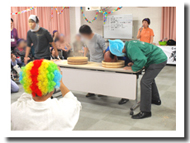 職員の頭の上に置かれた紙風船を、利用者さんが叩いて潰す・・・というゲーム。