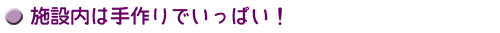 器用な利用者さんが、自主的につくってくれるので、施設内はいつの間にか手作り品でいっぱい。