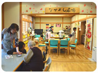 喫茶会場となった「なかよし広場」は、利用者さんが常に集まる食堂。