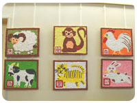 こちらは花紙をつくった絵画。干支がずらりと並んでいます!