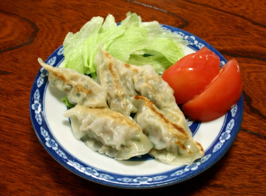 6. ホットプレートに調合油を入れ、餃子を並べ焼き色が付くまで焼き、水を加えフタをし、蒸し焼きにする。