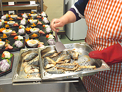 和え物、煮物、いろんな調理方法のものをまぜていきます。