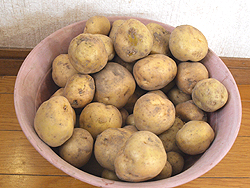 今日は、利用者さんと一緒に育てたじゃがいもを使います。