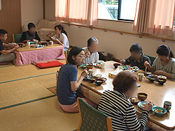 利用者さんとスタッフ、一緒になって会話を楽しみながら食事をします。