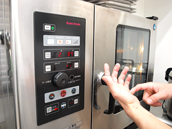 スチコンは、スチーム(水蒸気)とコンベクションオーブン(熱風)の量を設定して調理を行う多機能加熱調理機器。