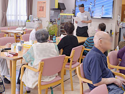 完成したお料理は、料理人が運び、利用者さんにきちんと説明を行います。
