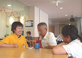 利用者さんに話しかけながら、今日も楽しくお仕事。