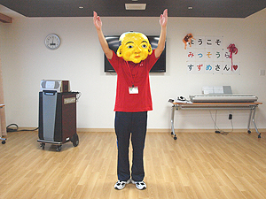体操のリードは、このお面をかぶってすることも。
