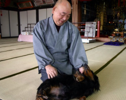 本堂のなかに入ると、癒し系の住職と、ミニチャダックスフンドのまろちゃんが迎えてくれます。
