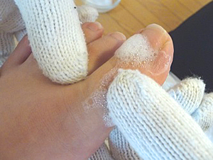 足全体をすみずみまで洗いましょう。 指と指の間や爪と皮膚の境目は汚れがたまりやすいところです。 とくにていねいに洗ってください。 清潔にすることで、白癬菌などの感染予防や気になるにおい対策にもなります。