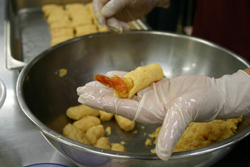?に尾をつけ、えびの天ぷらに再成して蒸す。 |