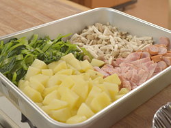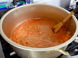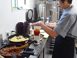 今日のパスタに使っているミートソースは、田坂さんが購入し、おいしいと思ったミートソースを、独自に研究しつくったもの。
