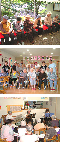 お誕生会は毎月の開催で、ボランティアさんによるマンドリン演奏や紙芝居などを楽しみながら、皆さんでお祝いをしています。