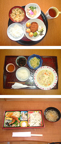 さつま芋の天ぷらなど、ホームの畑でとれたお芋や野菜も食卓に並びます。 | | | | |  | | お風呂