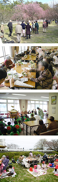 お花見やお弁当を持ってのお出かけ行事もあります。 | | | | |  | | お風呂