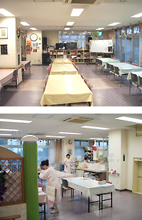 静養室にはゆっくりと横になれるベッドも多数あります。 | | | | |  | | お食事