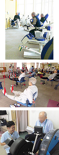 リハビリを望まれている方はもちろん、最初はリハビリに乗り気でなかった方も少しずつ目標を持ち、それぞれの目標達成に向けて、ヒモの体操やマシンといった体を動かすことを手段としてリハビリに取り組んでおられます。
