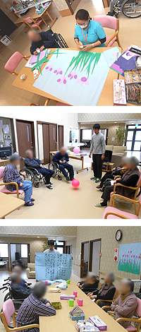 おしゃべりをしたり、レクリエーションをしたり、季節の飾りを作ったり皆さんで楽しく過ごされています。 | | | | |  | | お食事