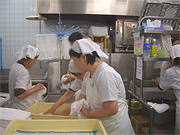 調理班と盛り付け班に分かれて作業を行います。