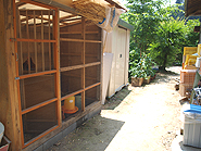 | にわとりを飼っているので、いつでも産み立ての玉子を食べることができます。また、裏山の畑では野菜を育てており、安全でおいしい食材がすぐに手に入る環境です。 |