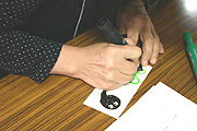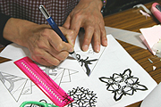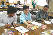 「紙切り用カッターは、最近100円均一で買えます!」というような最新情報や、「施設などでレクチャーする場合は、みなさんに見やすいように大きな見本をつくってくださいね」という教える側への注意点、「こうすれば、ゲームになりますよ」とアレンジ方法まで…さまざまな工夫も教えてくださる研修会。