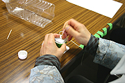 発砲スチロールで作った的に向かって、みんなで飛ばし大会。なかなか力強く飛んで行きます。