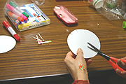 牛乳パックをつかって作った円盤を、輪ゴムの力で飛ばします。