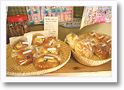 駄菓子以外にも、いろは屋さんのパンや、障害者施設作業所の手づくり品も置いています。