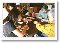 デイの利用者さんと子供たちがおしゃべりしたり、一緒に値札貼りをしたり…