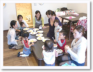 お母さん達が会話を楽しめる空間。地域住民が井戸端会議できる空間にもなります。