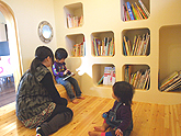 一級建築士事務所 莫設計同人さんのアイディアで生まれたライブラリー。ちょっと変わった空間が子どもたちの興味を惹き付けます。