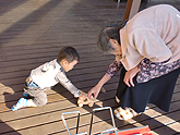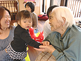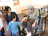 地域交流スペースに遊びに行った利用者と、子どもの交流。